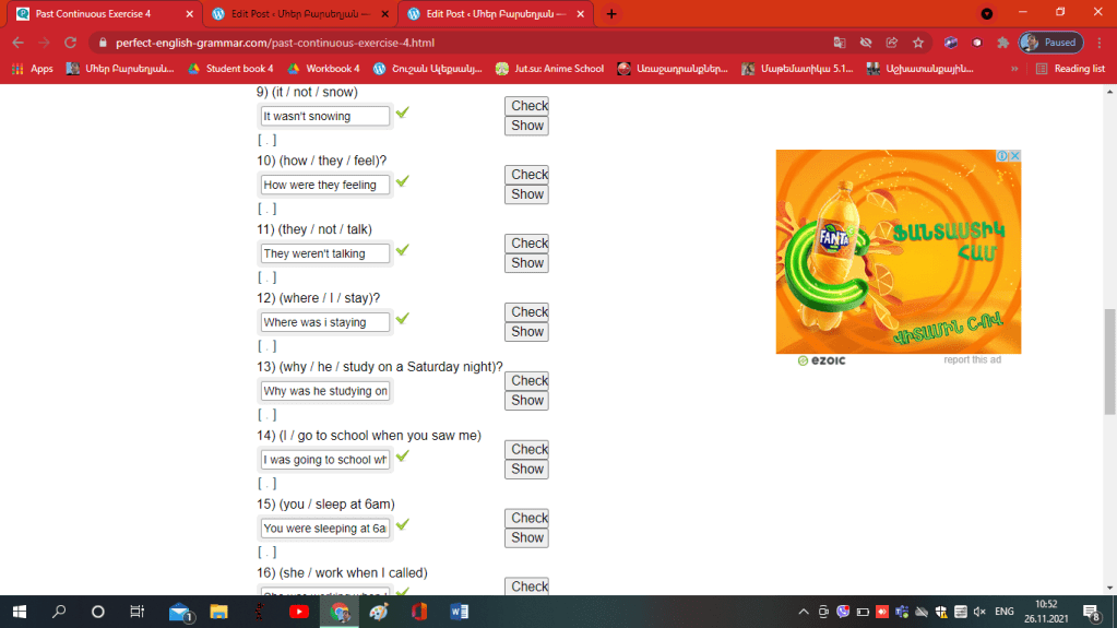 Show3) (they / drink coffee when you arrived)?