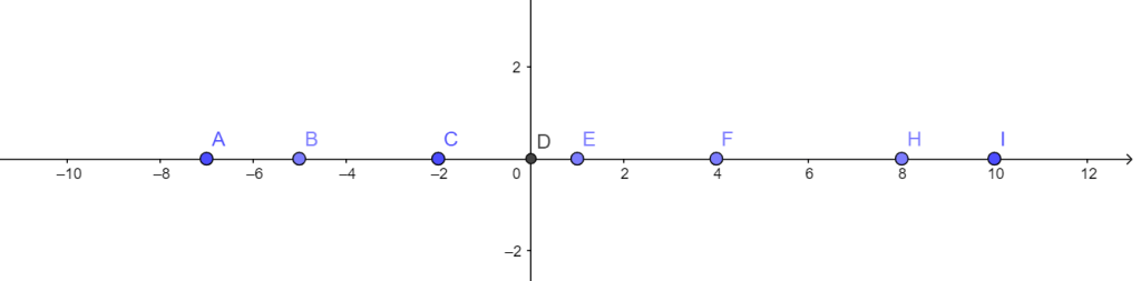 7) Կոորդինատային ուղղի վրա A (–6), B (+2), C (–3), D (–4), E (+8),