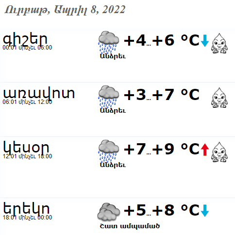 Եղանակը Գյումրիում Ապրիլի 8-10
